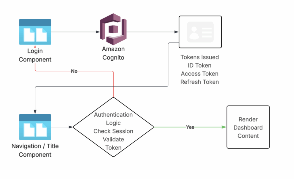 Once authentication is completed on the frontend, the logic is encapsulated into reusable AEM frontend components. These components are applied at the template level, allowing pages such as Login and Dashboard to inherit consistent authentication structure and behavior through their respective templates, as illustrated in the diagram.