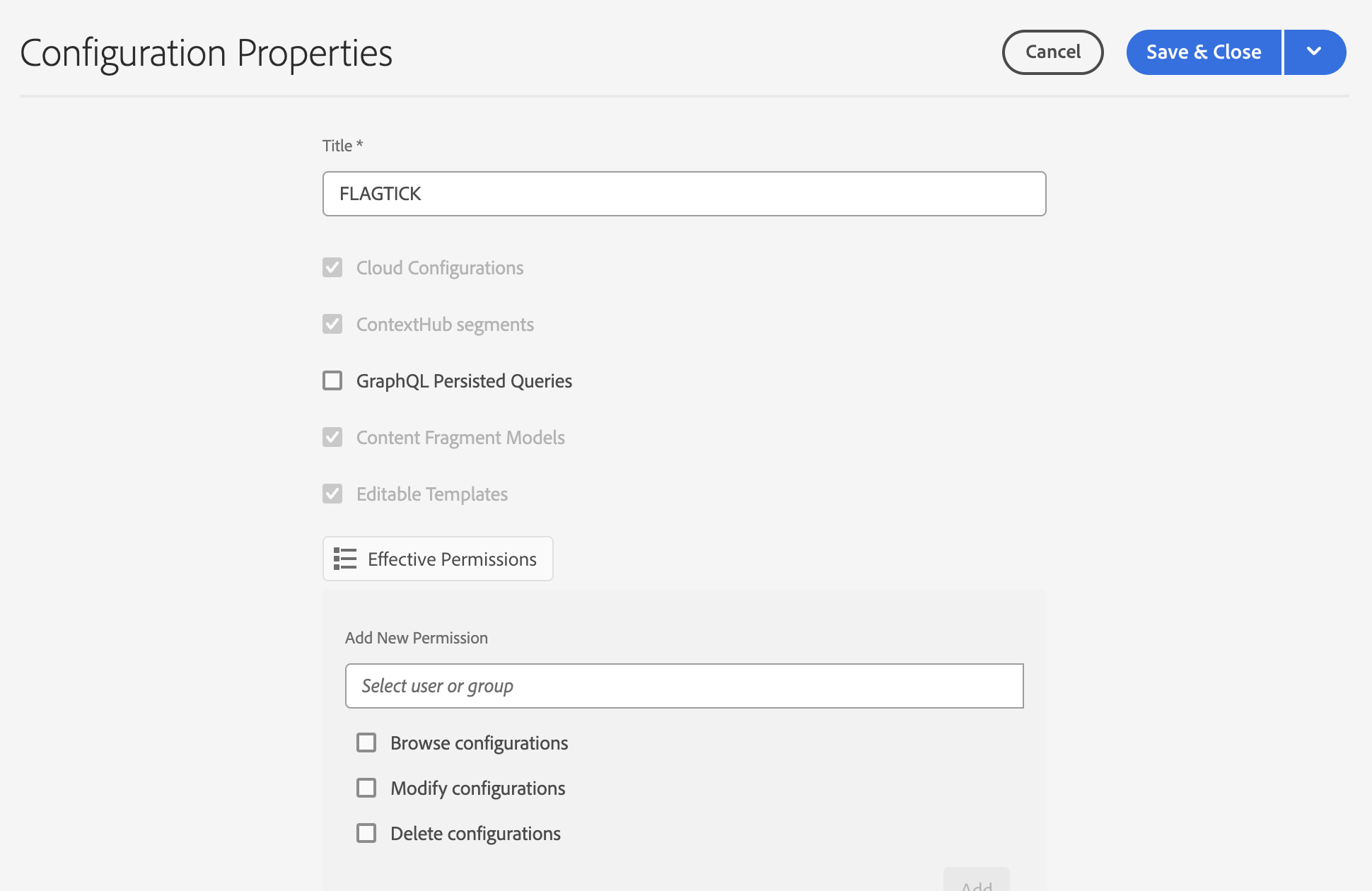 You can also enable other options like Content Fragment Models while creating or editing a configuration.
