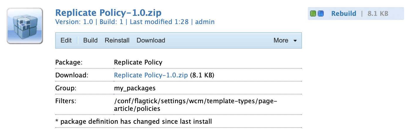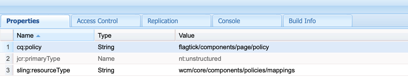 As you can see, the cq:policy still points to flagtick/components/page/policy_article.