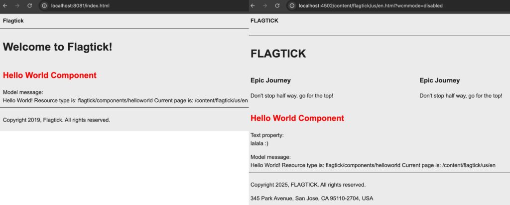 </div>In AEM, the same output comes from a component defined by sling:resourceType. A node in the JCR points to that component: