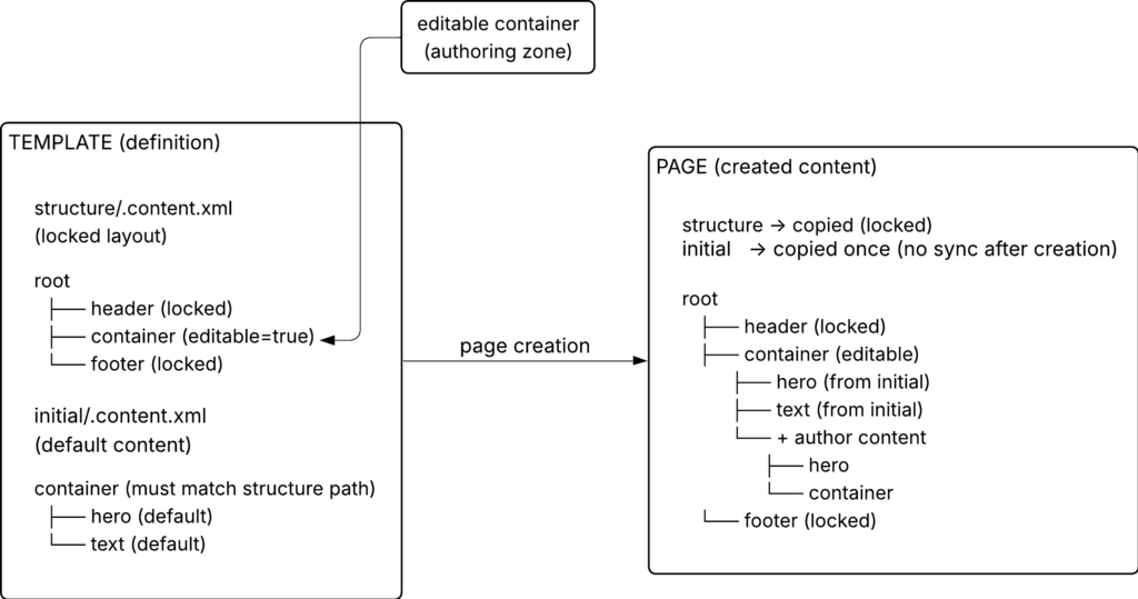 Editable containers define authoring areas. Content lives inside and can be freely managed.