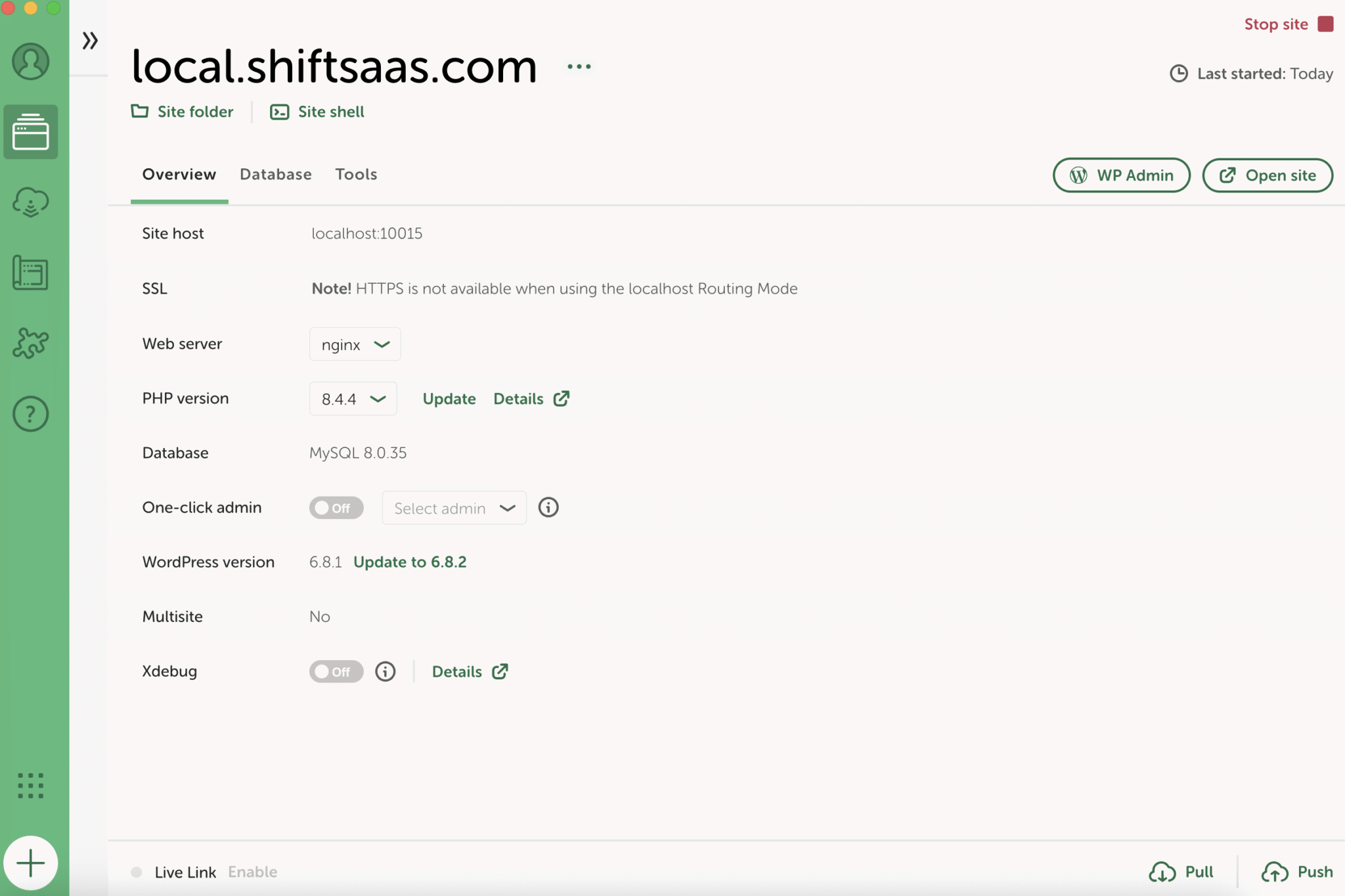Drop this website wpengine.com and get Local tool via https://localwp.com/, after installing it and see the screenshot as below, here is local.shiftsaas.com available for this website you are in shiftsaas.com.