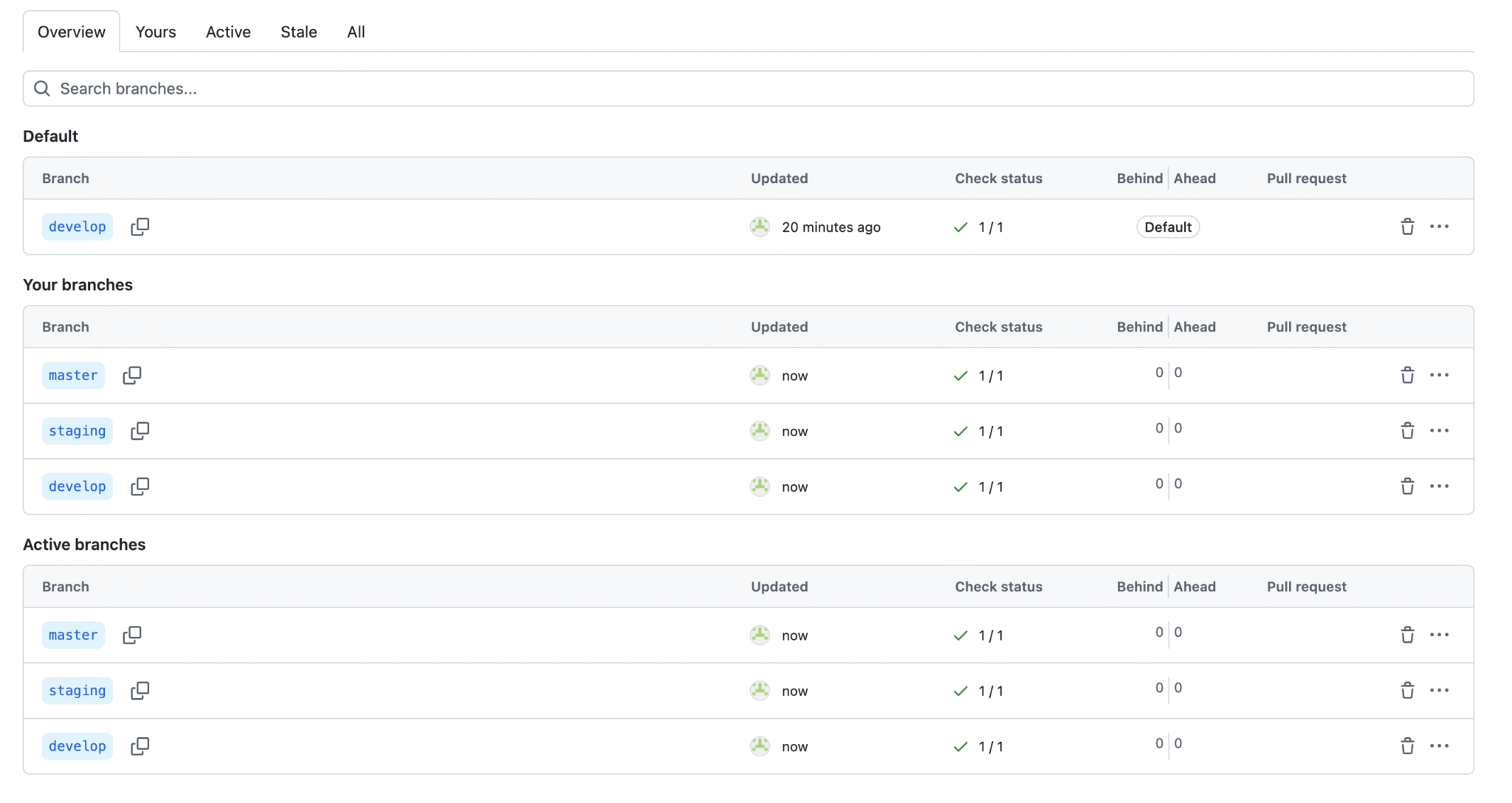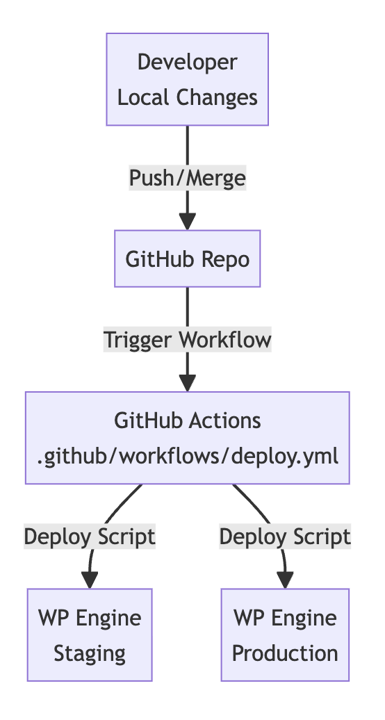 develop→ Deploy to WP Engine Developmentstaging→ Deploy to WP Engine Stagingmain(orproduction) → Deploy to WP Engine Production