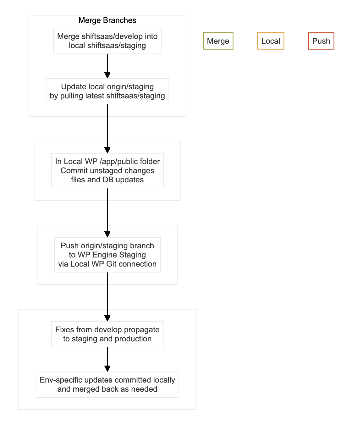 origin/stagingby pulling or fetching the latestshiftsaas/staging. - In Local WP’s