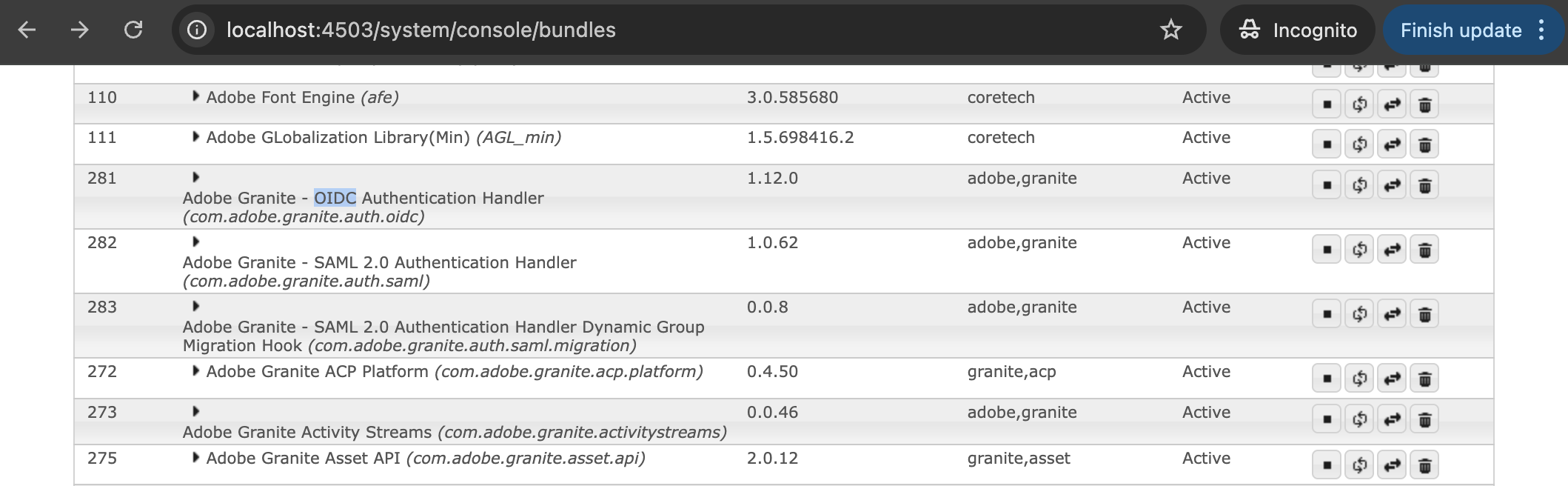 $ tail -f crx-quickstart/logs/error.logAfter saving, use Components console to confirm all OIDC-related instances are in ACTIVE state before continuing with authentication testing.