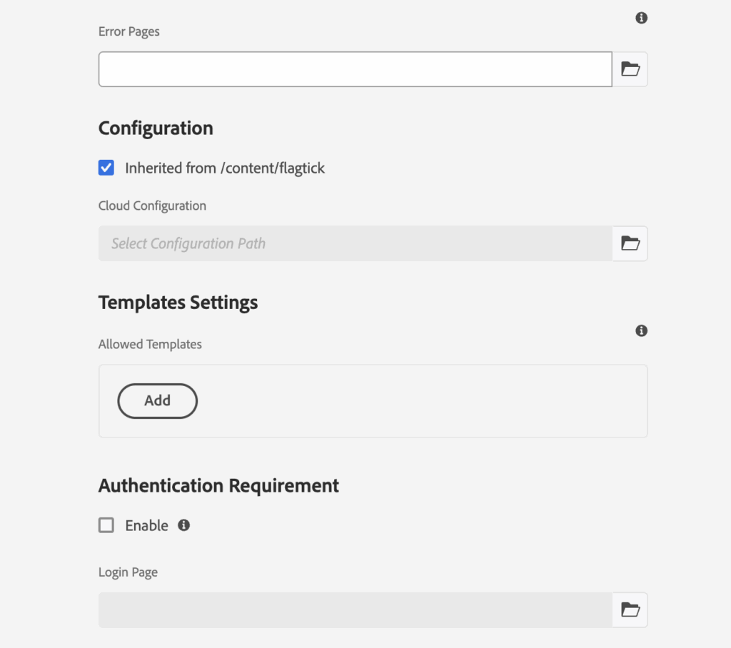 - Local (SDK, HTTP): http://localhost:4503/content/<site>/j_security_check